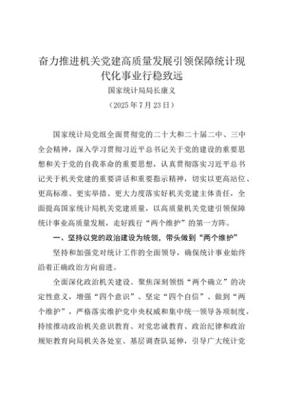 / 署名文章:20250723奋力推进机关党建高质量发展引领保障统计现代化事业行稳致远——国家统计局局长康义