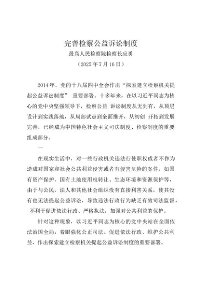 署名文章:20250716完善检察公益诉讼制度——最高人民检察院检察长应勇
