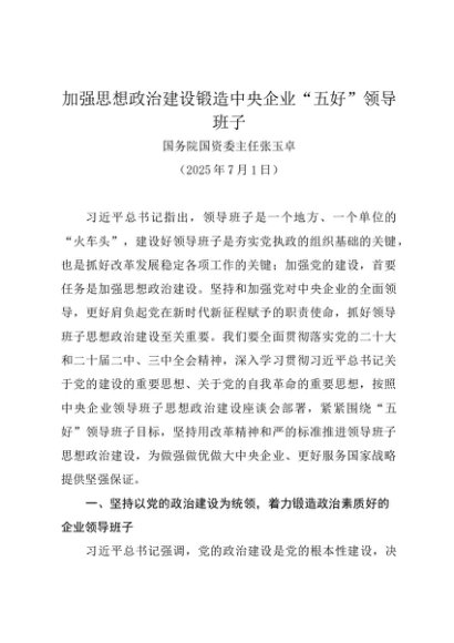 / 署名文章:20250701加强思想政治建设锻造中央企业“五好”领导班子——国务院国资委主任张玉卓