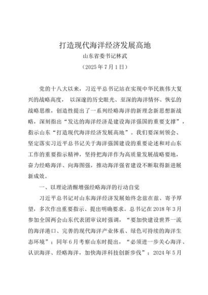 / 署名文章:20250701打造现代海洋经济发展高地——山东省委书记林武