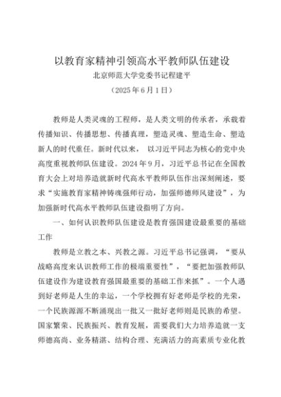 署名文章:20250601以教育家精神引领高水平教师队伍建设——北京师范大学党委书记程建平