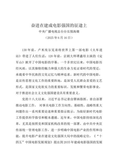 署名文章:20250616奋进在建成电影强国的征途上——中央广播电视总台台长慎海雄