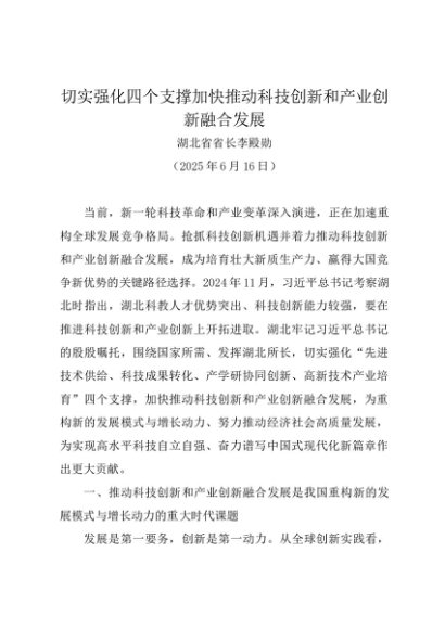 / 署名文章:20250616切实强化四个支撑加快推动科技创新和产业创新融合发展——湖北省省长李殿勋