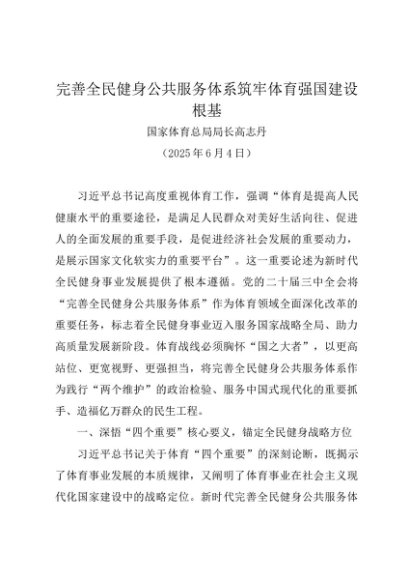 署名文章:20250604完善全民健身公共服务体系筑牢体育强国建设根基——国家体育总局局长高志丹
