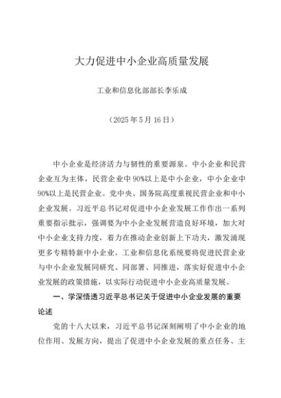 / 署名文章:20250516大力促进中小企业高质量发展——工业和信息化部部长李乐成