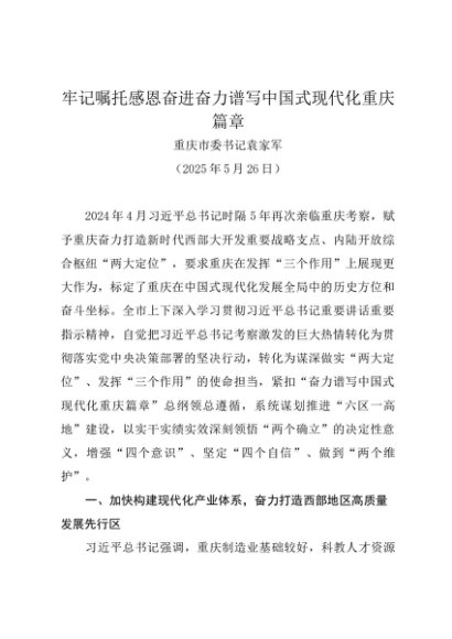 署名文章:20250526牢记嘱托感恩奋进奋力谱写中国式现代化重庆篇章——重庆市委书记袁家军