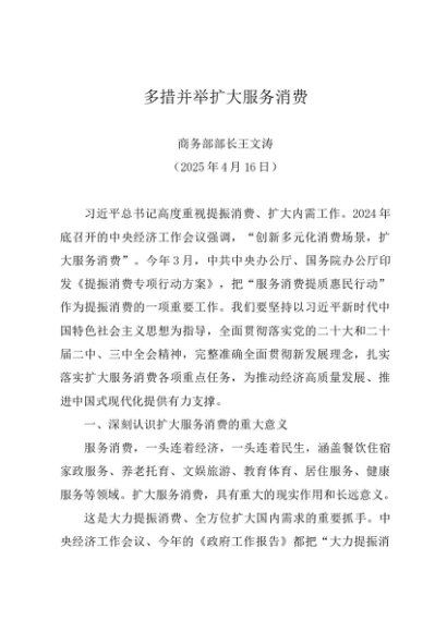 署名文章:20250416多措并举扩大服务消费——商务部部长王文涛