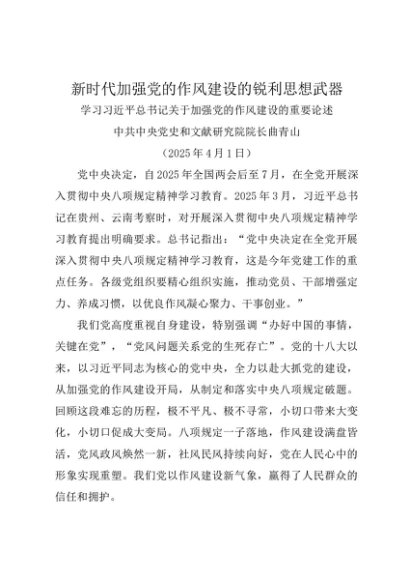 / 署名文章:20250401学习习近平总书记关于加强党的作风建设的重要论述——中共中央党史和文献研究院院长曲青山