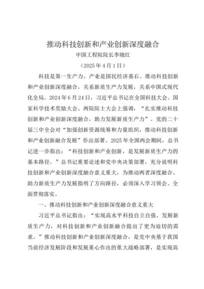 / 署名文章:20250401推动科技创新和产业创新深度融合——中国工程院院长李晓红