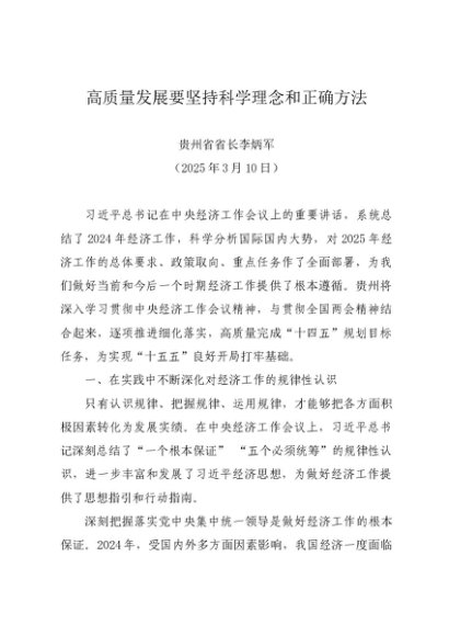署名文章:20250310高质量发展要坚持科学理念和正确方法——贵州省省长李炳军
