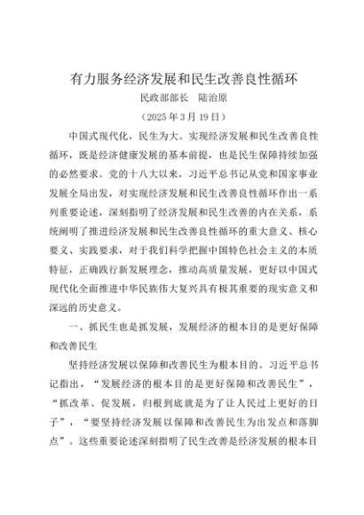 署名文章:20250319有力服务经济发展和民生改善良性循环——民政部部长 陆治原