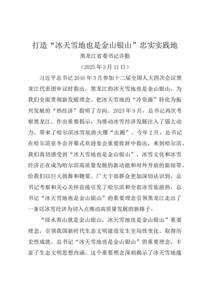 / 署名文章:20250311打造“冰天雪地也是金山银山”忠实实践地——黑龙江省委书记许勤