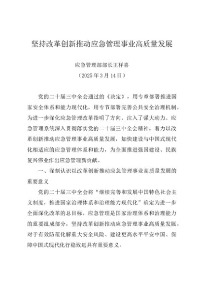 / 署名文章:20250314坚持改革创新推动应急管理事业高质量发展——应急管理部部长王祥喜