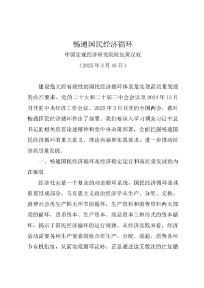 署名文章:20250316畅通国民经济循环——中国宏观经济研究院院长黄汉权