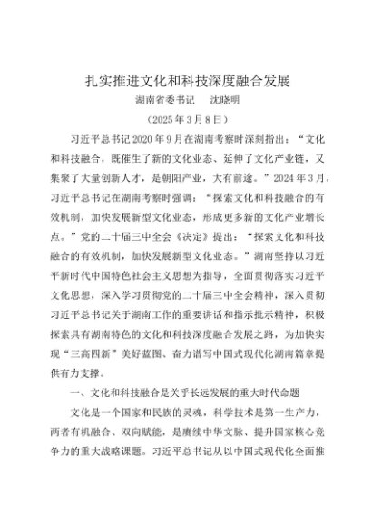 署名文章:20250308扎实推进文化和科技深度融合发展——湖南省委书记 沈晓明