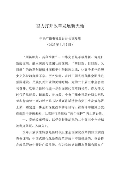 署名文章:20250307奋力打开改革发展新天地——中央广播电视总台台长慎海雄