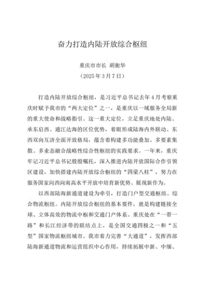 署名文章:20250307奋力打造内陆开放综合枢纽——重庆市市长 胡衡华