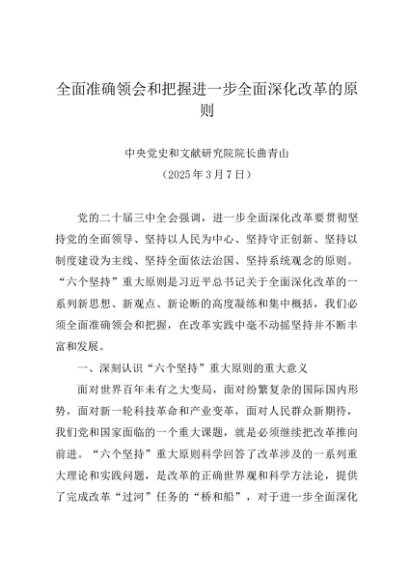 / 署名文章:20250307全面准确领会和把握进一步全面深化改革的原则——中央党史和文献研究院院长曲青山