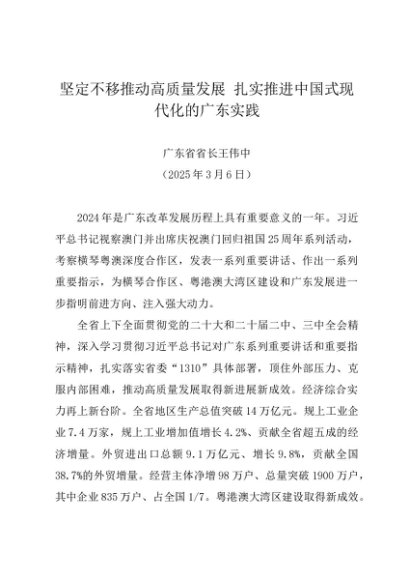 / 署名文章:20250306坚定不移推动高质量发展 扎实推进中国式现代化的广东实践——广东省省长王伟中