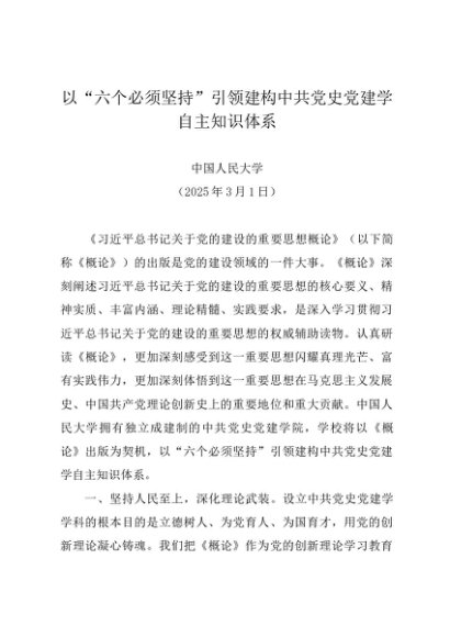 / 署名文章:20250301以“六个必须坚持”引领建构中共党史党建学自主知识体系——中国人民大学