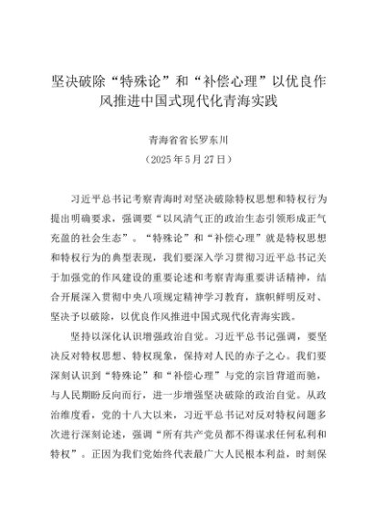 / 署名文章:2025027坚决破除“特殊论”和“补偿心理,以优良作风推进中国式现代化青海实践——青海省省长罗东川