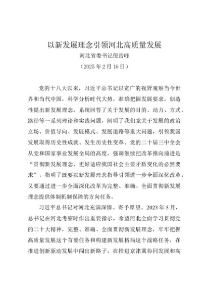 / 署名文章:20250216以新发展理念引领河北高质量发展——河北省委书记倪岳峰