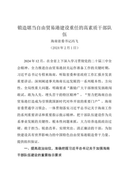 署名文章:20250201锻造堪当自由贸易港建设重任的高素质干部队伍——海南省委书记冯飞