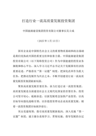 署名文章:20250113打造行业一流高质量发展投资集团——中国能源建设集团投资有限公司董事长吴立成