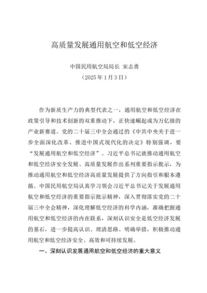 / 署名文章:20250103高质量发展通用航空和低空经济——中国民用航空局局长 宋志勇
