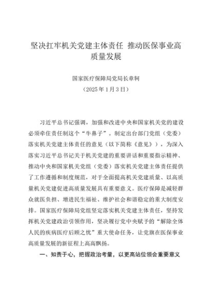 / 署名文章:20250103坚决扛牢机关党建主体责任 推动医保事业高质量发展——国家医疗保障局党局长章轲