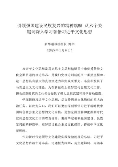 / 署名文章:20250106引领强国建设民族复兴的精神旗帜 从六个关键词深入学习领悟习近平文化思想——新华通讯社社长 傅华