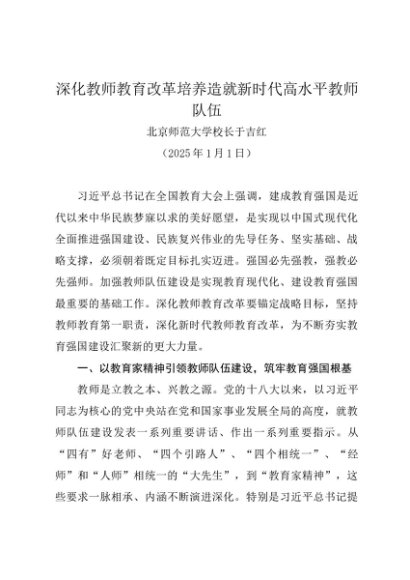 / 署名文章:20250101深化教师教育改革培养造就新时代高水平教师队伍——北京师范大学校长于吉红