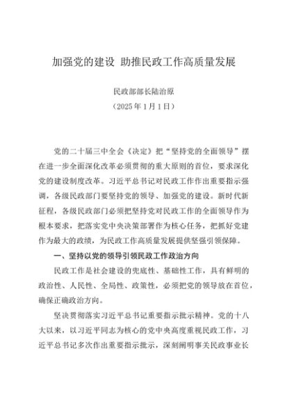 署名文章:20250101加强党的建设 助推民政工作高质量发展——民政部部长陆治原