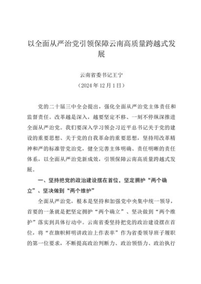 署名文章:20241201以全面从严治党引领保障云南高质量跨越式发展——云南省委书记王宁