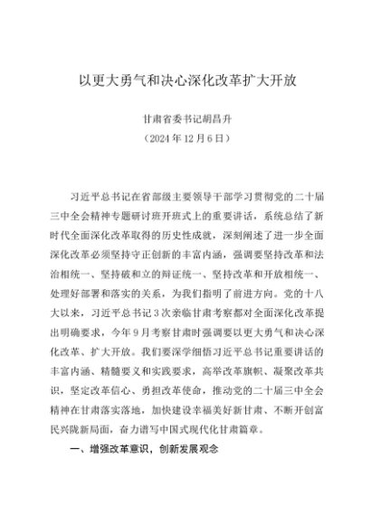 署名文章:20241206以更大勇气和决心深化改革扩大开放——甘肃省委书记胡昌升