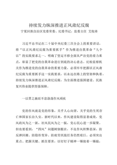 署名文章:20241127持续发力纵深推进正风肃纪反腐——宁夏回族自治区党委常委、纪委书记,监委主任 艾俊涛