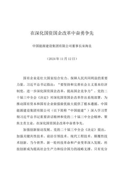 / 署名文章:20241112在深化国资国企改革中奋勇争先——中国能源建设集团有限公司董事长宋海良