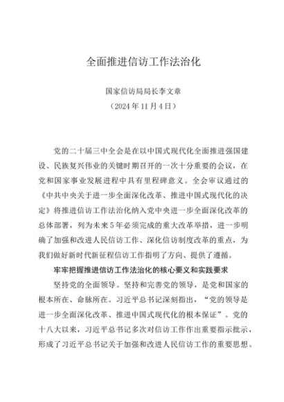 / 署名文章:20241104全面推进信访工作法治化——国家信访局局长李文章