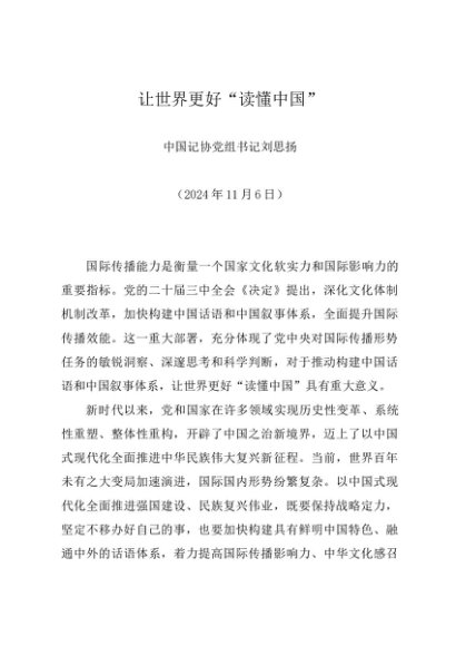 署名文章:20241106让世界更好“读懂中国”——中国记协党组书记刘思扬