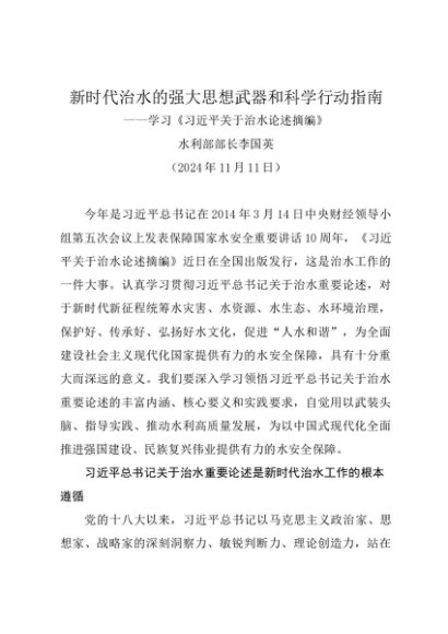 / 署名文章:20241111新时代治水的强大思想武器和科学行动指南——学习《习近平关于治水论述摘编》——水利部部长李国英