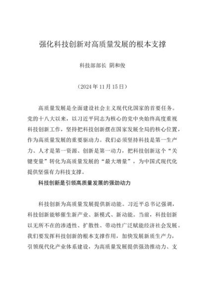 署名文章:20241115强化科技创新对高质量发展的根本支撑——科技部部长 阴和俊