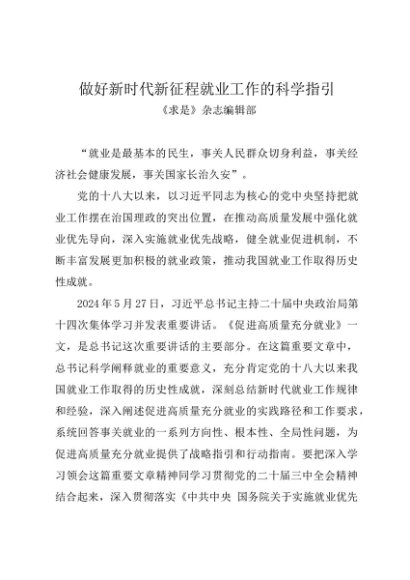 署名文章:20241031做好新时代新征程就业工作的科学指引——《求是》杂志编辑部