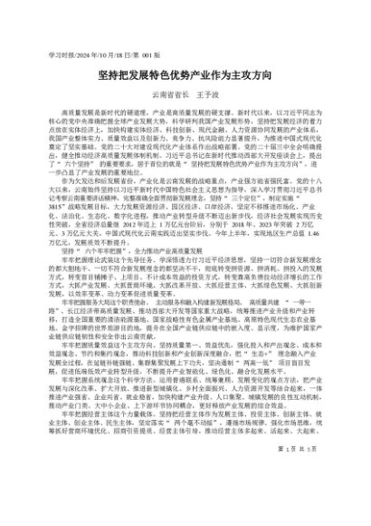 署名文章:20241018坚持把发展特色优势产业作为主攻方向——云南省省长王予波