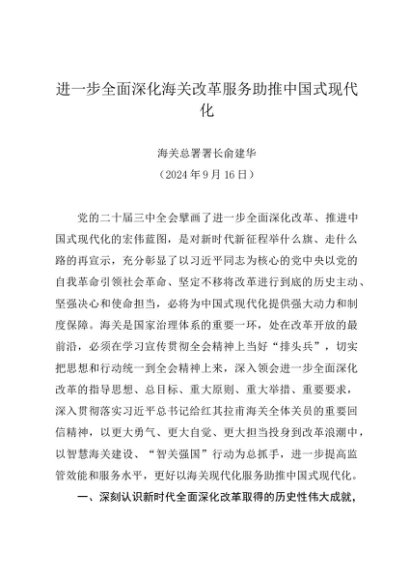 / 署名文章:20241016进一步全面深化海关改革服务助推中国式现代化——海关总署署长俞建华