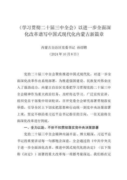 署名文章:20241008.(学习贯彻二十届三中全会)以进一步全面深化改革谱写中国式现代化内蒙古新篇章——内蒙古自治区党委书记 孙绍聘docx