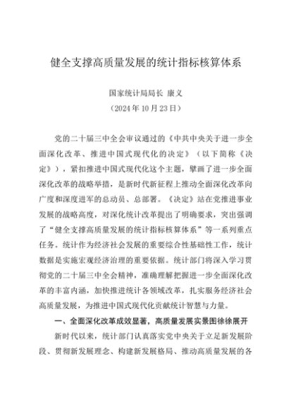 署名文章:20241023健全支撑高质量发展的统计指标核算体系——国家统计局局长 康义