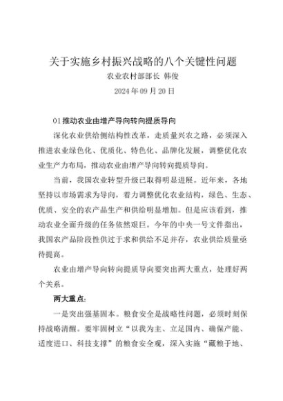 / 署名文章:20240920关于实施乡村振兴战略的八个关键性问题——农业农村部部长 韩俊