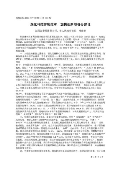 / 署名文章:20240925深化科技体制改革加快创新型省份建设——江西省省长叶建春