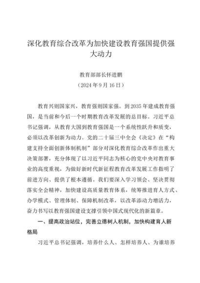 署名文章:20240916深化教育综合改革为加快建设教育强国提供强大动力——教育部部长怀进鹏
