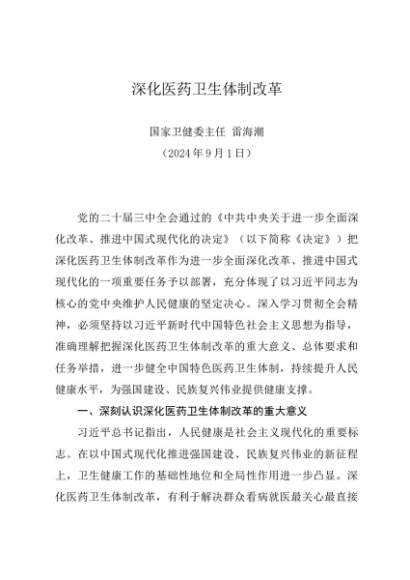 署名文章:20240901深化医药卫生体制改革——国家卫健委主任 雷海潮
